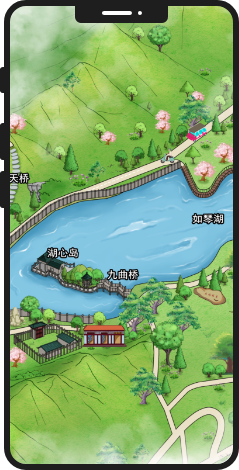根据景区平面图,按园区布点绘制手绘地图,在导览地图中可以显示景区中的景点信息、景点和景点之间的路径,也可以显示景区的关键地点信息,比如厕所、小卖部、售票处、景区出入口等信息。